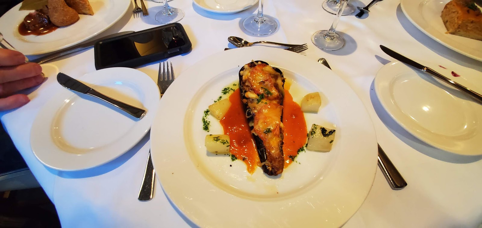 Down to Deck 2 for our first dinner. By now, we are all pretty tipsy as the champagne & several other special alcoholic drinks were served to help us celebrate this really special occasion!!
